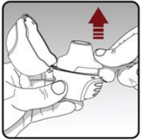 Inntak av en hel døgndose av legemidlet krever 4 hovedtrinn Trinn 1. Åpning av Tiogiva pulverinhalatoren: |