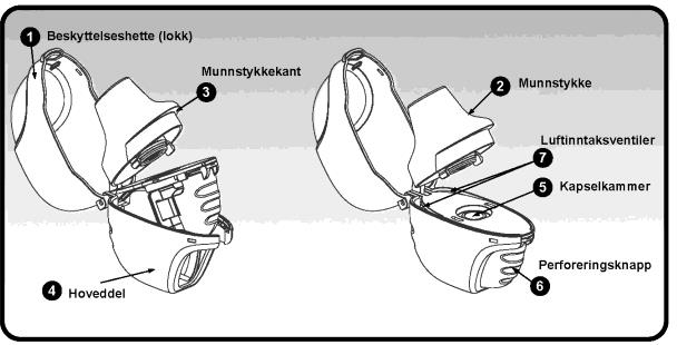 Kapslene er kun til inhalasjon og ikke til inntak via munnen. Kapslene skal ikke svelges.