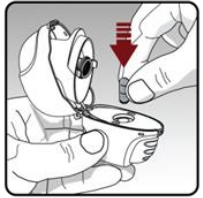 Trinn 2. Innsetting av kapselen i Tiogiva pulverinhalatoren: