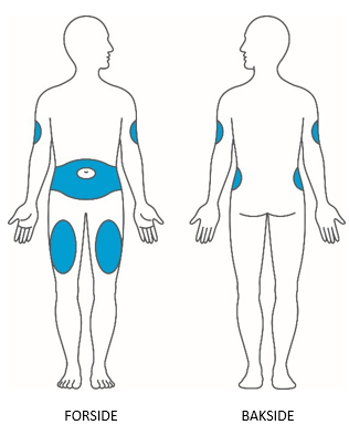Lege, apotek eller sykepleier kan hjelpe deg å velge hvilket injeksjonssted som passer best for deg.