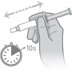 Rist deretter sprøyten godt i minst 10 sekunder.