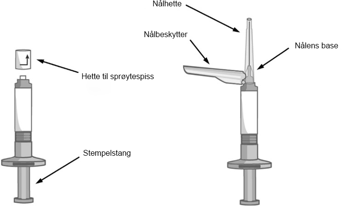 Brukt sprøyte og ubrukt nål umiddelbart skal kasseres umiddelbart i en godkjent kanylebøtte.