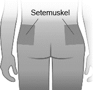 Husk å veksle injeksjonsstedene mellom de to setemusklene.