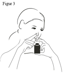 Lukk det andre neseboret med en finger, trykk raskt ned 1 gang og pust samtidig forsiktig inn (se figur 3).
