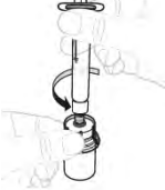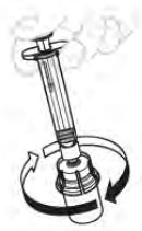 Løsne sprøyten fra hetteglasset ved å holde i hetteglassadapteren. Skru sprøyten mot klokken for å løsne. |