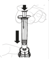 Trykk stempelstangen langsomt inn for å injisere all væsken inn i hetteglasset.