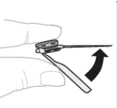 Fjern kanylen. Bøy over kanylebeskyttelsen, den skal smekkes på plass.