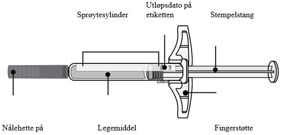 Forsikre deg om at legemidlet i sprøyten er klart og fargeløst til svakt gulfarget.