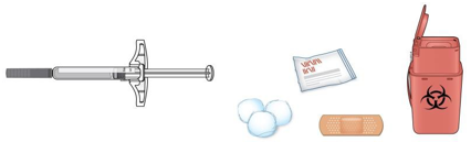 Samle sammen alt materiale du trenger til injeksjonen(e).