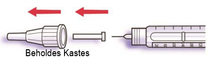 B. Fjern den ytre kanylehetten og behold den for fjerning av brukt kanyle etter injeksjonen. Ta av den indre kanylehetten og kast den.