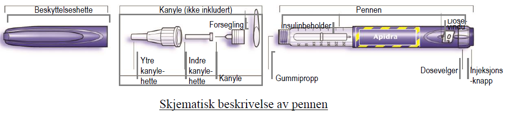 Apidra i i en ferdigfylt penn er kun tilpasset injeksjon like under huden (se også avsnitt 3). Rådfør deg med legen din dersom du trenger å injisere insulinet ved hjelp av en annen metode.
