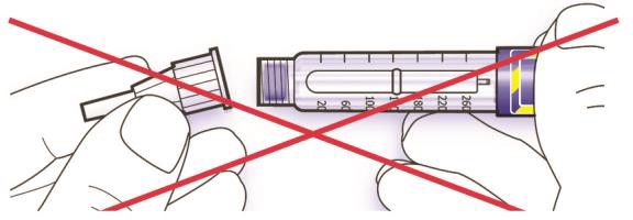 Dosen skal ikke velges og injeksjonsknappen skal ikke trykkes inn uten at kanylen er påsatt.