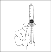 1. Før du åpner sprøyten, skyver du hardt på stempelstangen for å åpne sprøytestempelet.
