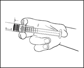 Skyv stempelstangen forsiktig for å injisere nødvendig volum.