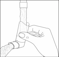Rengjør munnstykket minst én gang i uken. Det er viktig å holde munnstykket rent for å sikre at medisin ikke samles opp og blokkerer inhalatoren. Ta først av beskyttelseshetten og fjern beholderen fra munnstykket. Skyll med varmt vann gjennom munnstykket til det ikke lenger er noe synlig medisin og/eller skitt. |