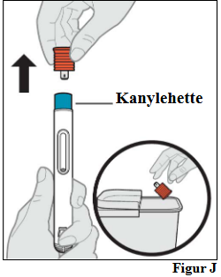 Merk: Dersom en annen person gir injeksjonen må denne personen også være forsiktig når den ferdigfylte pennen trekkes ut og kastes, for å unngå uhell med å skade seg på nålestikk og overføring av infeksjon.