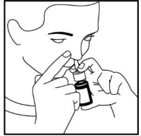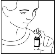 4. Hold flasken rett opp og ned og sett spraytuppen forsiktig inn i et nesebor.