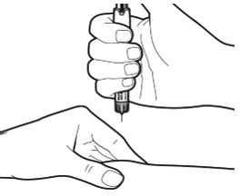 Ikke ta ut nålen med en gang. Vent i minst 5 sekunder før du trekker den ut for å være sikker på at hele dosen er injisert.