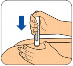 Press den ferdigfylte pennen bestemt ned mot injeksjonsstedet for å begynne injeksjonen.