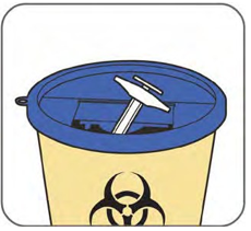 Kast den tomme sprøyten i en godkjent avfallsbeholder for skarpe gjenstander.