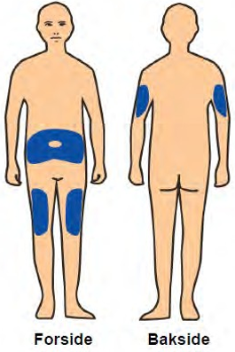Se «Valg av injeksjonssted» for veiledning for valg av injeksjonssted.