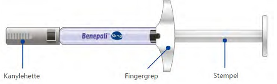 En ferdigfylt sprøyte til engangsbruk inneholder én 50 mg dose med Benepali.