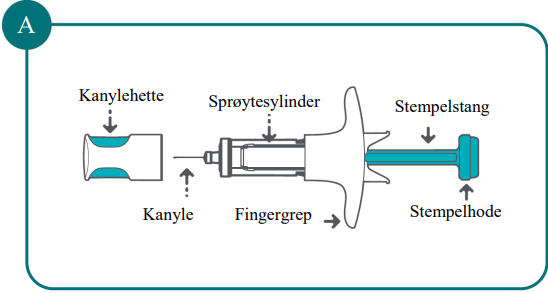 Slik ser Bimzelx 160 mg ferdigfylt sprøyte (se figur A) ut: