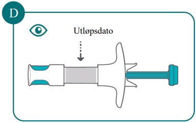Kontroller legemidlet gjennom visningsvinduet. Legemidlet skal være klart til svakt opaliserende og uten partikler. Fargen kan variere fra fargeløs til svakt brungul. Det kan hende at du ser luftbobler i væsken. Dette er normalt.