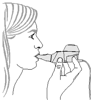 4. Pust normalt (pust inn og ut) gjennom munnstykket. Unngå å puste gjennom nesen. Fortsett med å komfortabelt puste inn og ut til behandlingen er fullført.