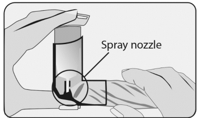 Dersom du har en ny inhalator, eller dersom du ikke har brukt inhalatoren på en uke eller mer, må du teste den før du bruker den. Fjern munnstykkedekslet og trykk ned beholderen inne i inhalatoren tre ganger for å utløse tre doser ut i luften - bort fra deg selv.