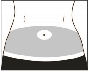 Område 1: Magen (abdomen) rundt navlen. Unngå området 5 cm rundt navlen,