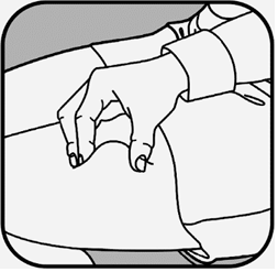Klem huden hardt sammen mellom tommelen og de andre fingrene, slik at det dannes en hudfold som er ca. 5 cm bred.