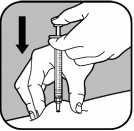 Behold taket i hudfolden. Press stemplet langsomt inn i sprøyten, i løpet av opptil 30 sekunder, til sprøyten er tom. |