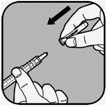 Ta av hetten på den lille nålen ved å trekke den rett av.
