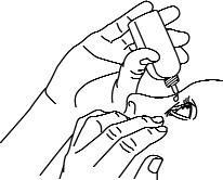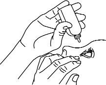 Unngå at flasketuppen berører øyet eller området rundt øyet. Den kan bli forurenset med bakterier som kan forårsake øyeinfeksjoner og føre til alvorlige øyeskader, eventuelt synstap. For å unngå at flasken forurenses bør du unngå at flasketuppen kommer i berøring med noe.