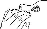 4. Snu flasken og trykk forsiktig som vist (figur 2 og 3) til en enkelt dråpe som instruert av legen din er dispensert i øyet. Ikke berør øyet eller øyelokket med tuppen av flasken.