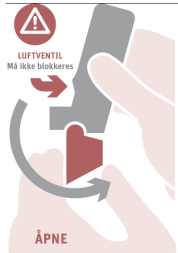 Oppbevares ved høyst 25ºC. Hold munnstykkedekselet lukket etter fjerning av folieinnpakningen.