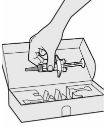 Ta ut sprøyten fra esken ved å holde midt på sprøytekroppen.
