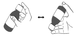 Miksturen må ristes for hånd omtrent 40 ganger, i minst 30 sekunder, ved å snu flasken opp og ned kontinuerlig til miksturen er godt blandet og hele miksturen ser lik ut.