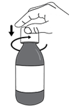 Trinn 2. Åpne flasken ved å trykke ned flaskekorken og skru den mot venstre (mot klokken) (se figur C). Ikke kast flaskekorken.