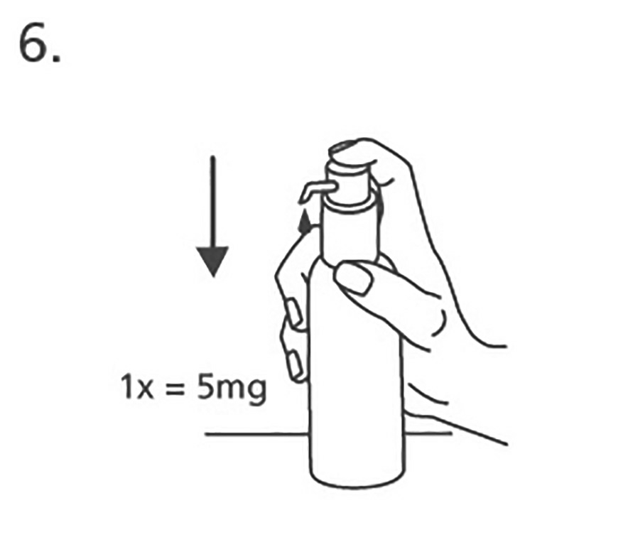 Vanlig startdose er ett pumpetrykk én gang daglig (1 × 5 mg) i den første uken. Denne dosen økes til to pumpetrykk én gang daglig (1 × 10 mg) i den andre uken, og til tre pumpetrykk én gang daglig (1 × 15 mg) i den tredje uken. Fra den fjerde uken er anbefalt dose fire pumpetrykk én gang daglig (1 × 20 mg).