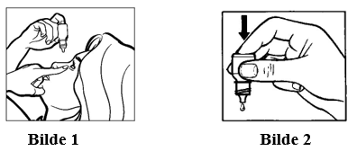 Flaskens spiss må ikke berøre øyelokket, omgivelsene rundt øyet eller andre flater. Det kan forurense dråpene.