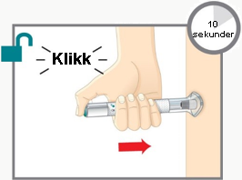 Fortsett å holde den klare bunnen fast mot huden. Du vil høre et andre klikk omtrent 5 til 10 sekunder etter det første. Dette andre klikket sier fra om at injeksjonen er fullført.