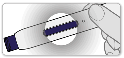Trykk den grå knappen helt ned til du hører et “klikk”. Klikket betyr at injeksjonen starter.
