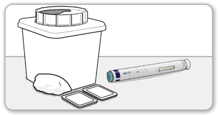 Samle følgende elementer til hver injeksjon på en ren, godt belyst arbeidsflate: