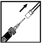 Fjern kanylehetten ved å trekke den bestemt rett av sprøyten. Du må ikke berøre kanylen eller la den berøre noen andre overflater (se figur 15). Pass på at hetten ikke bøyes eller vris ved fjerning for å unngå skade på kanylen.