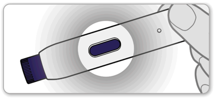 Fortsett å holde pennen bestemt mot huden til du hører et nytt “klikk”, eller til det har gått 10 sekunder etter det første klikket (avhengig av hva som inntreffer først).
