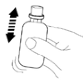 3. Skru lokket på igjen og kontroller at den sitter godt fast. Ryst flasken kraftig i minst 15 sekunder eller til tabletten er fullstendig oppløst og det har dannet seg en svakt gulaktig suspensjon.