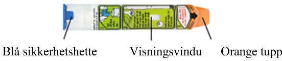 IKKE fjern den blå sikkerhetshetten før du er klar til å bruke autoinjektoren.
