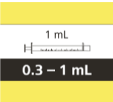 Hvis din daglige dose med Evrysdi er mellom 0,3 ml og 1 ml, bruk en oral sprøyte på 1 ml (gul etikett).